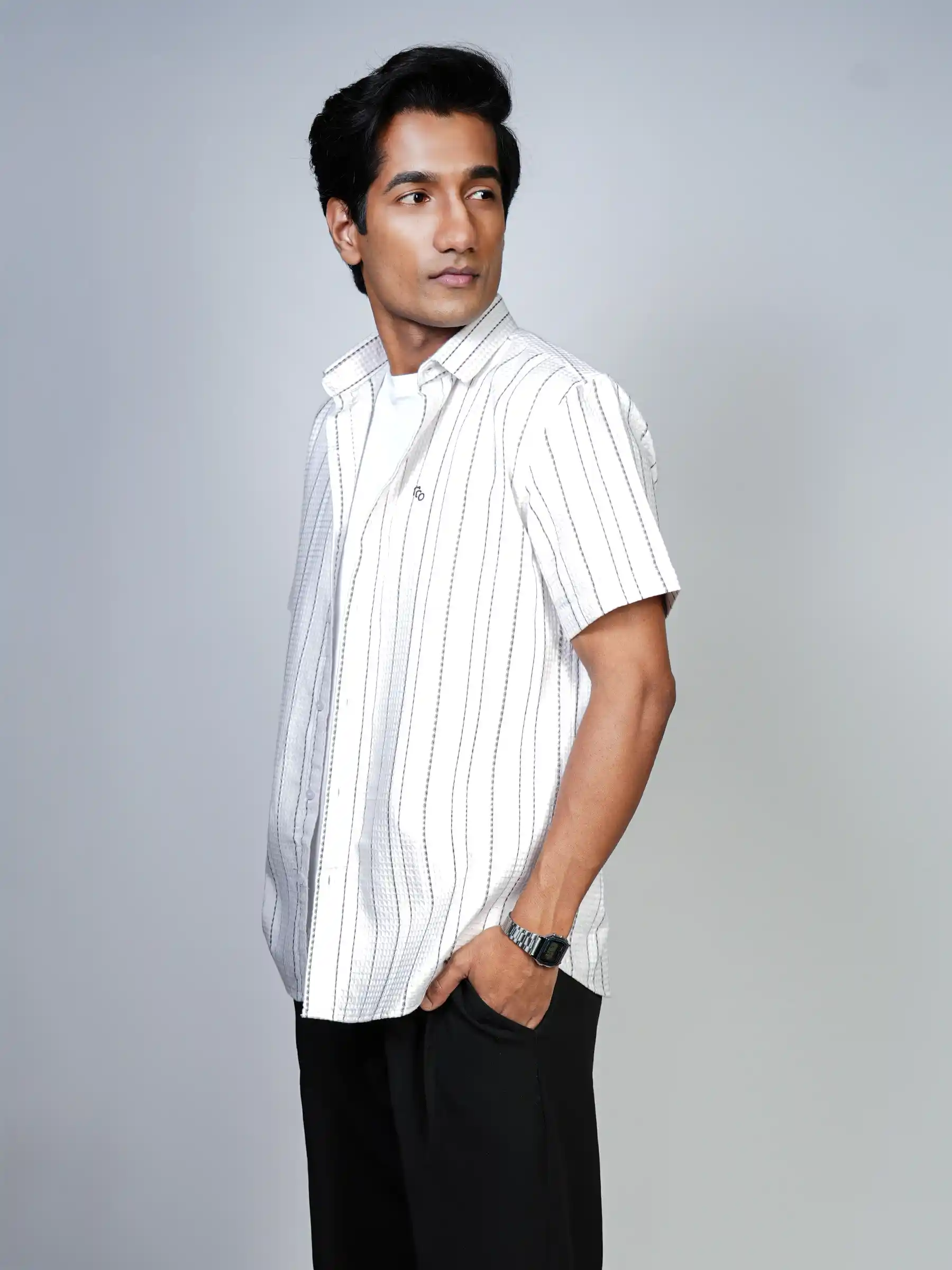 Elevate your casual wardrobe with BlendCulture’s classic Blue Line Pattern, perfect for any casual outing. Made from 100% pure cotton Fabric by Arvind Mill, it offers ultimate comfort and breathability, making it a go-to choice for all-day wear. Dress it up or down, and enjoy the timeless look that never goes out of style!