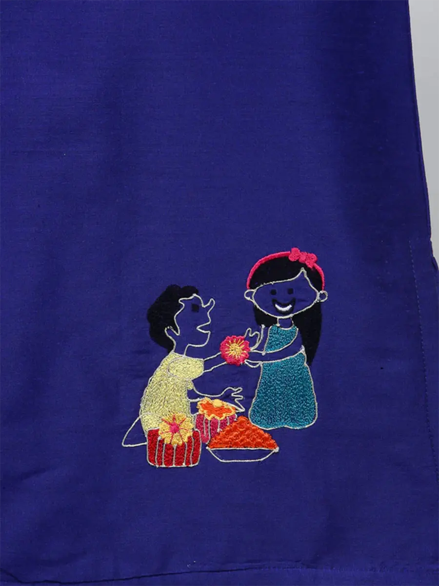 - Material: Blue brother-sister embroidered Kurta, crafted from a high-quality blend of Cotton Silk for luxury and Cotton Cambric for breathability and comfort.