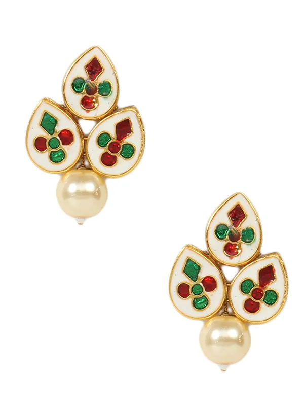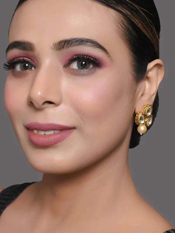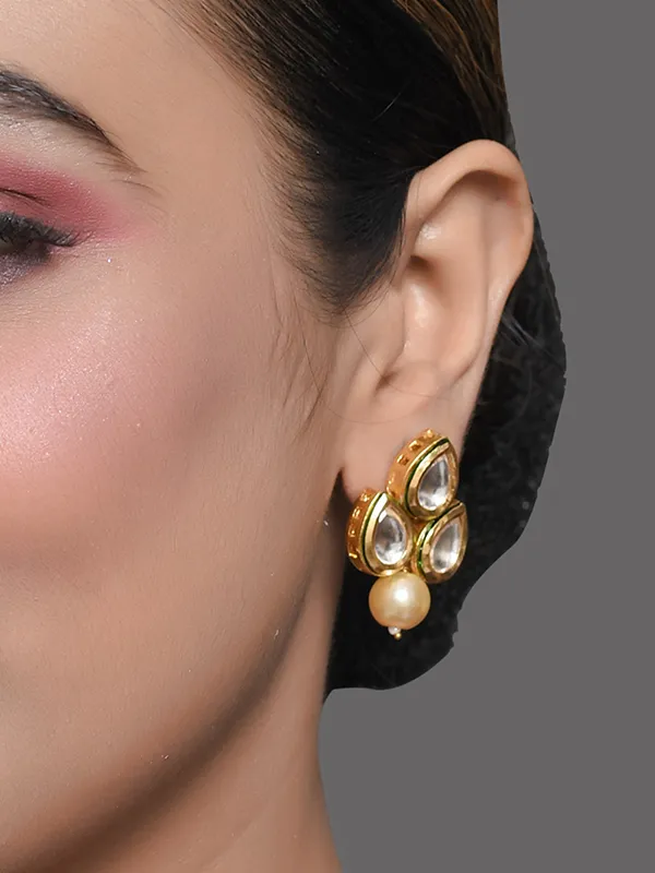 - Description: Kundan embellished earrings with ivory pearl, ideal for statement occasions.