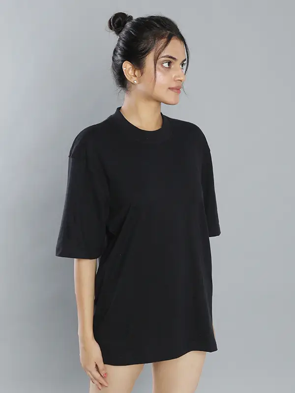 - Design: Experience ultimate comfort and style with our Oversized Black Plain T-shirt, a modern essential made from soft, breathable cotton for versatile, effortless cool.