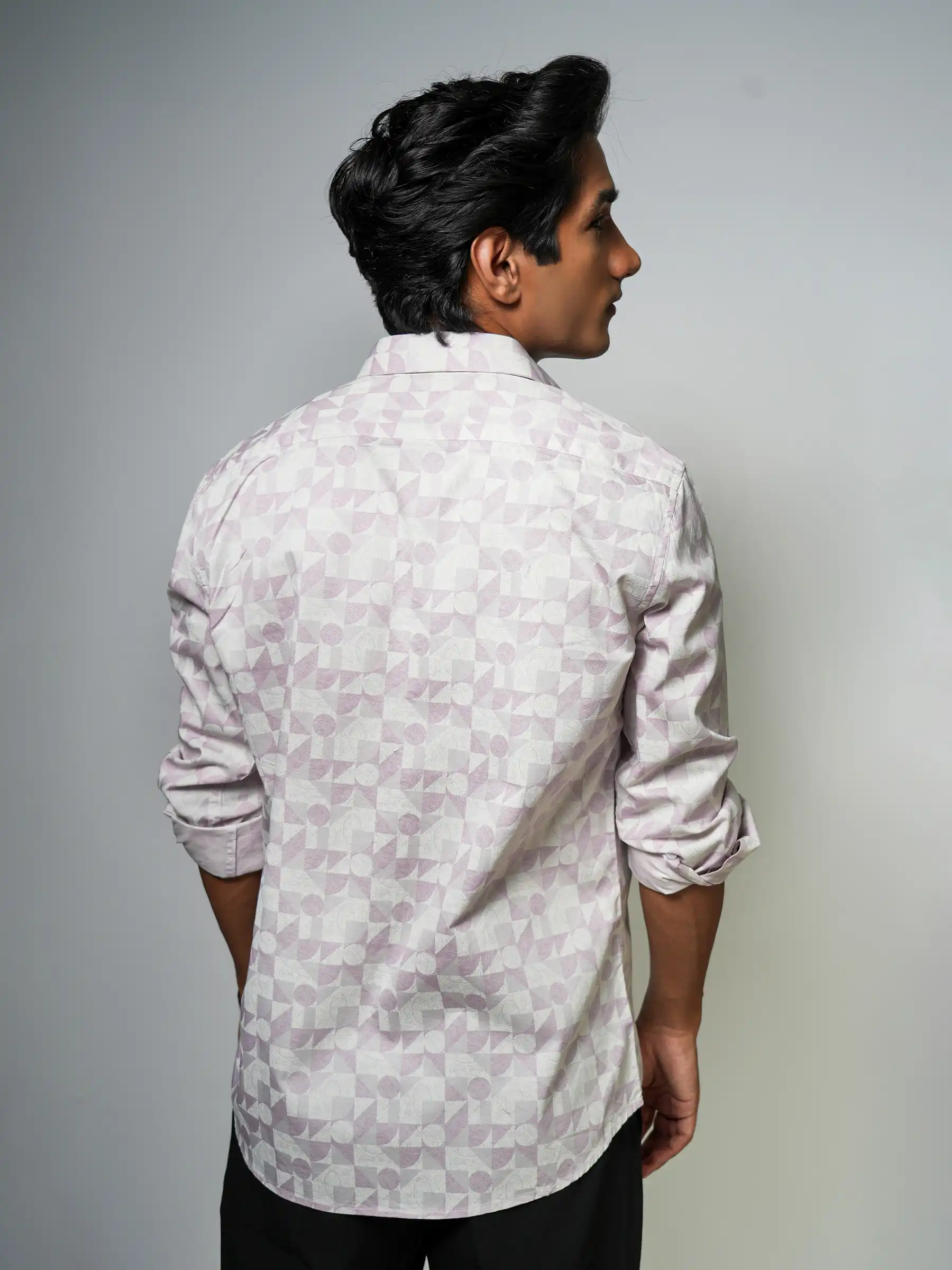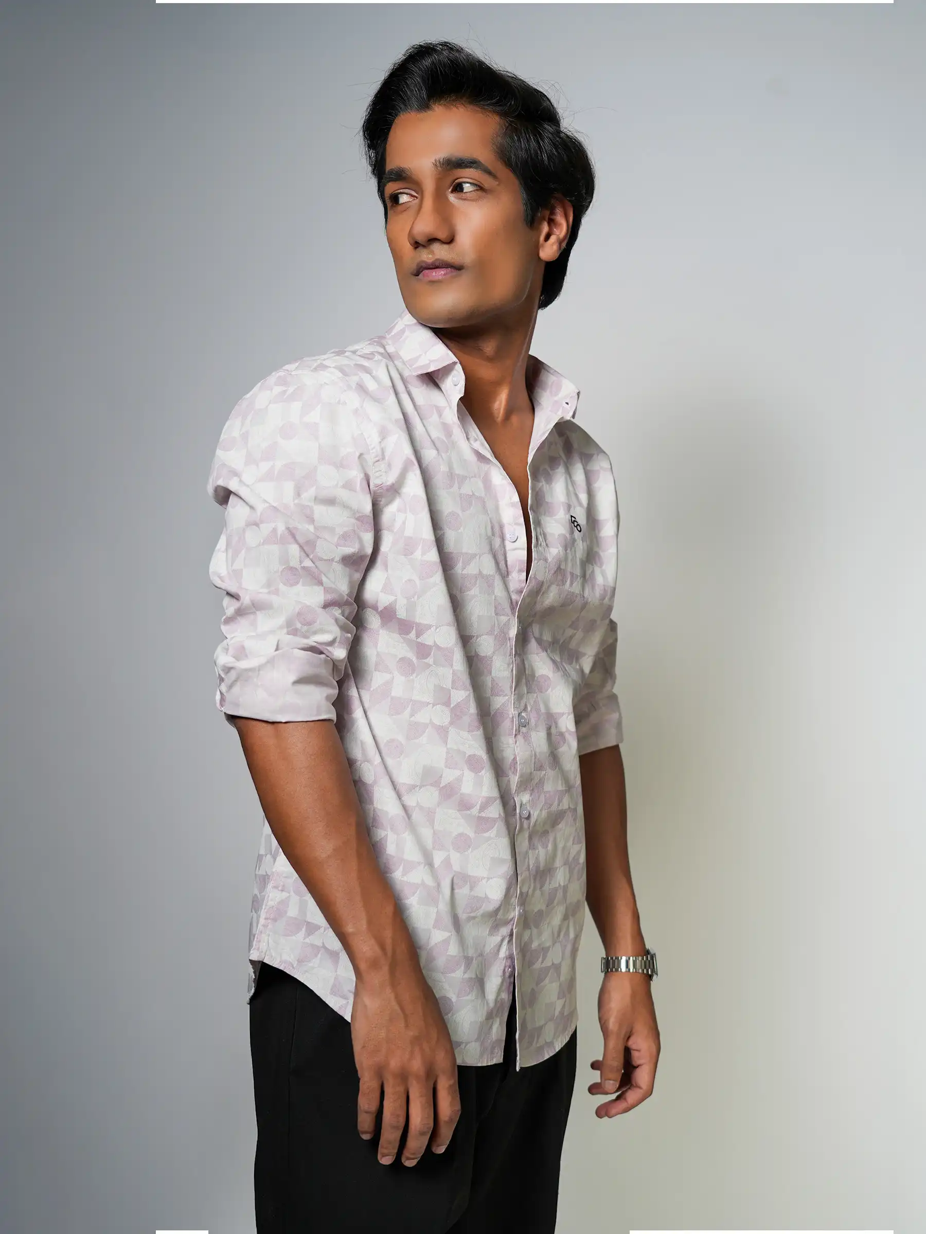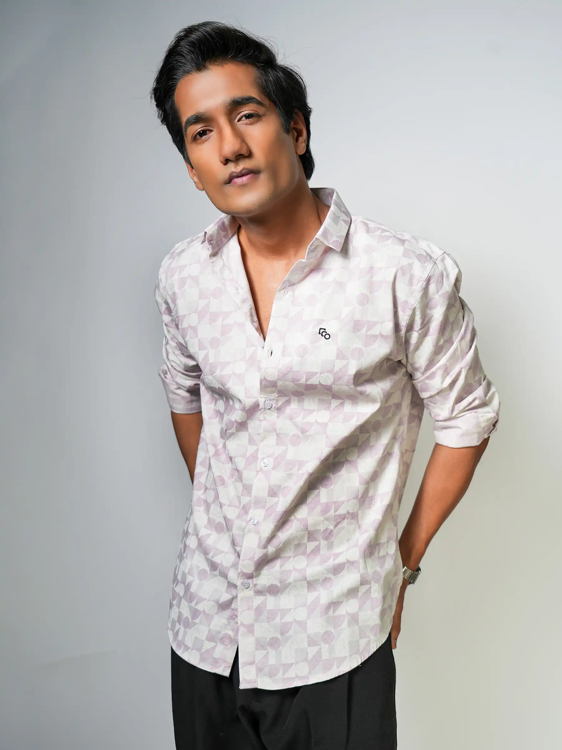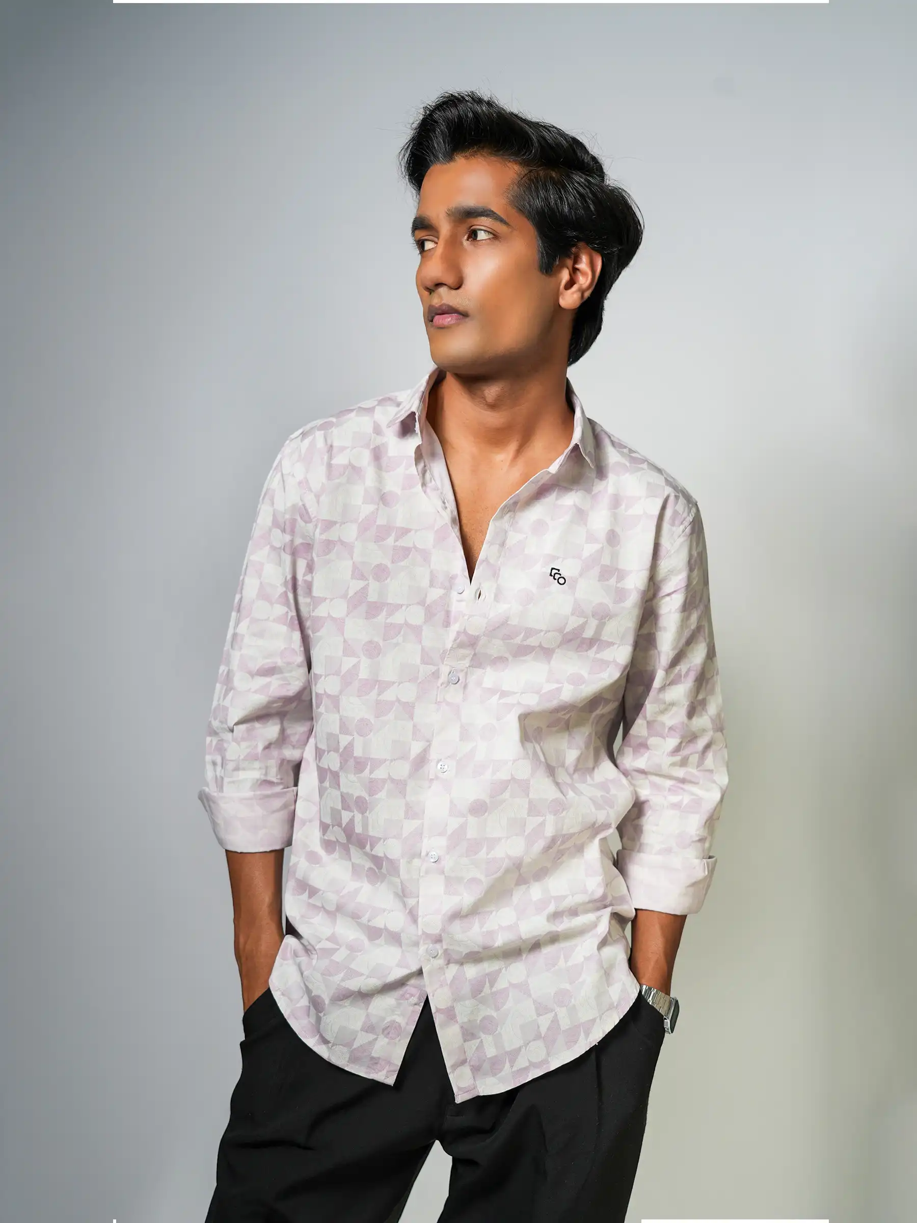 Embrace comfort and style with this uniquely patterned shirt from BlendCulture, made from 100% pure cotton Fabric by Arvind Mill. The soft fabric ensures a breathable and lightweight fit, perfect for any season. This shirt features an abstract geometric pattern in soothing tones, blending modern aesthetics with timeless elegance. With a tailored cut, button-down design, and crisp collar, it’s versatile enough for both casual outings and semi-formal occasions. Elevate your wardrobe with this homegrown, made-in-India piece crafted with care and attention to detail.